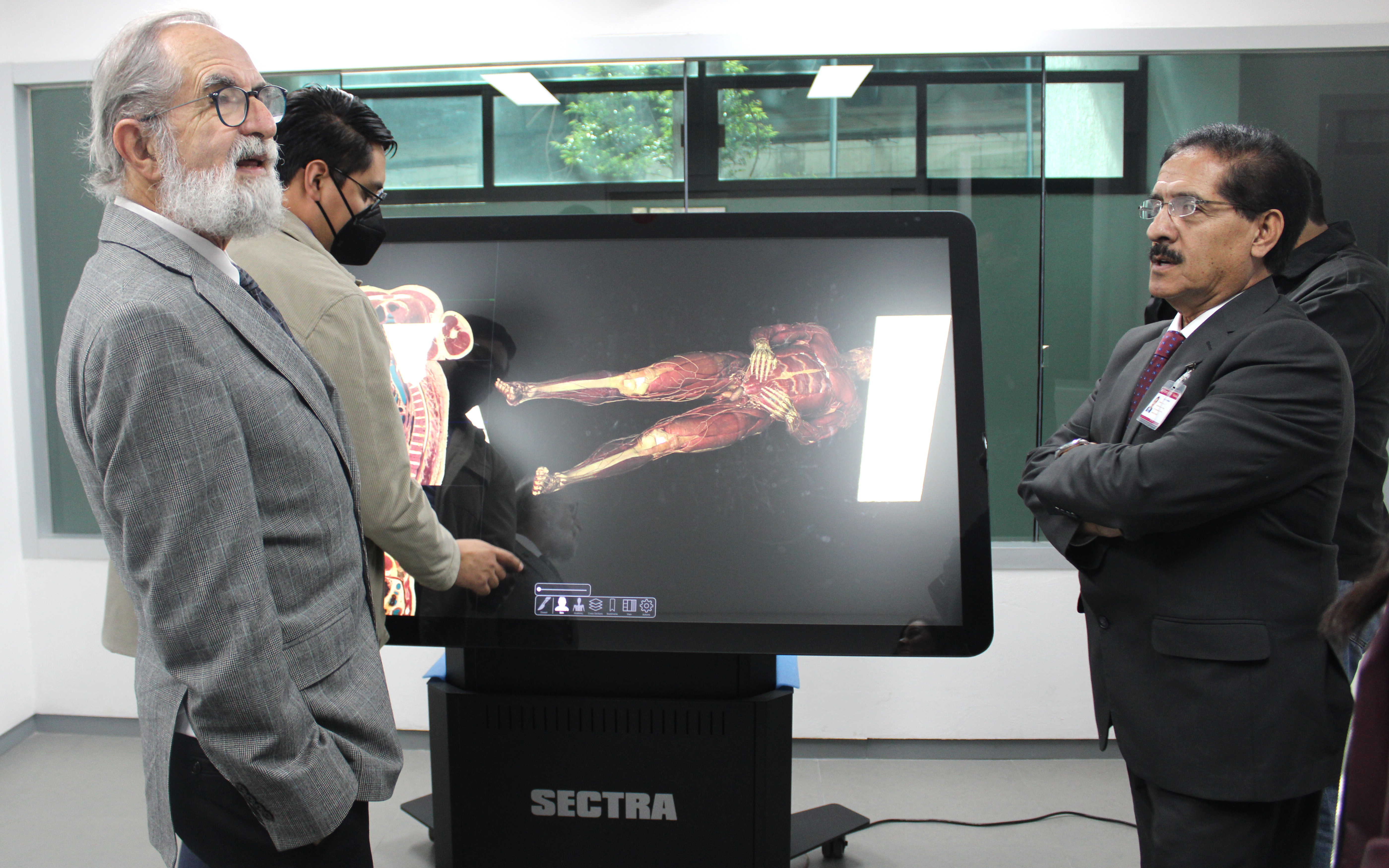 Durante el recorrido, el Secretario pudo observar el desarrollo de prácticas académicas mediante el uso de tecnología de alta especialidad, entre la que destacan la mesa de disección virtual SECTRA, que permite el estudio anatómico tridimensional con alto nivel de precisión, así como simuladores clínicos avanzados, incluidos simuladores neonatales y pediátricos que reproducen escenarios reales de atención médica. Este modelo de simulación fortalece la toma de decisiones, el razonamiento diagnóstico y la adquisición de habilidades clínicas en entornos controlados y seguros, contribuyendo a una formación rigurosa orientada a las necesidades reales de la población.