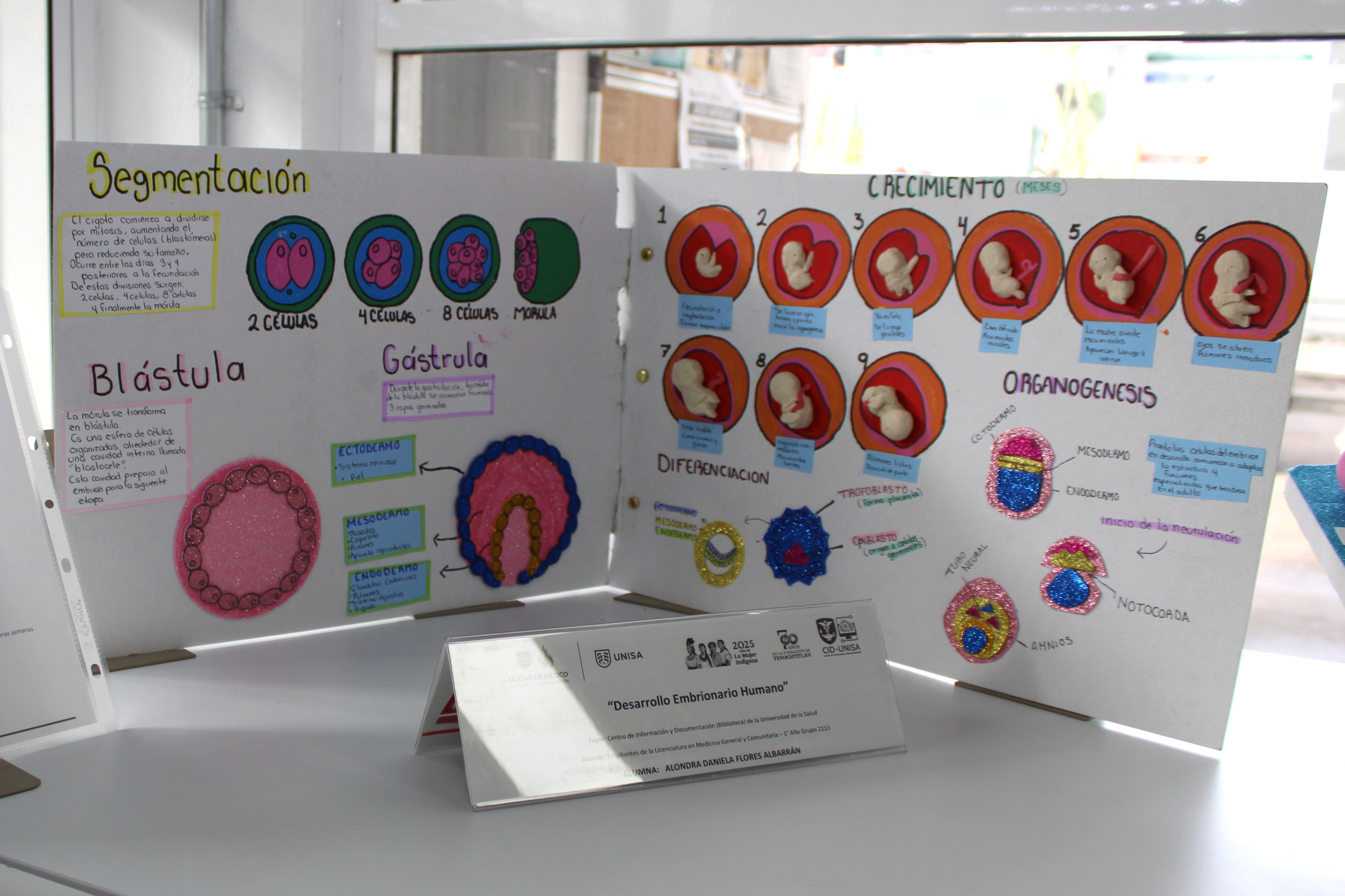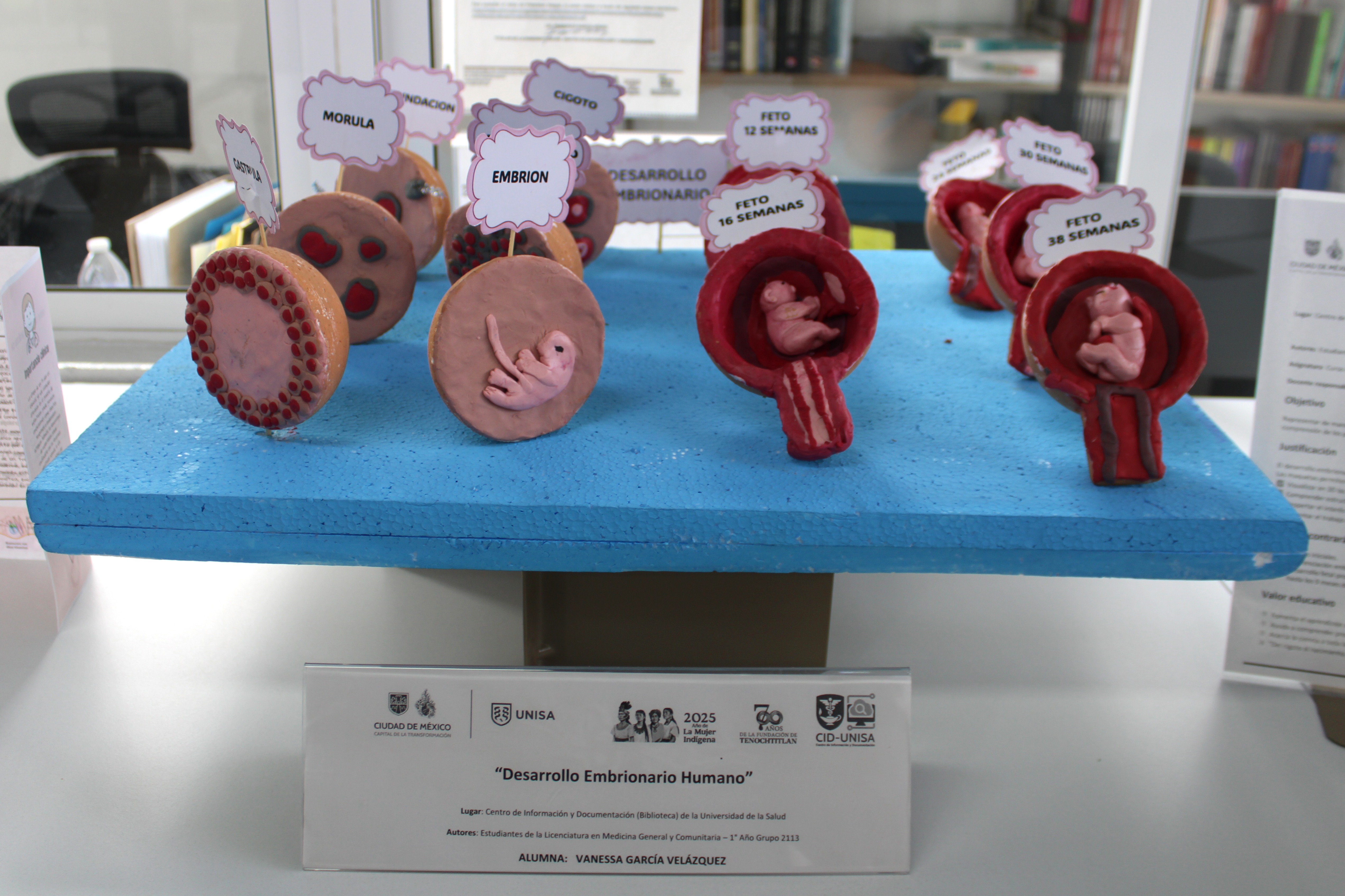 La embriología, rama de la biología que estudia el desarrollo del ser humano desde la fecundación hasta el nacimiento, constituye un área fundamental en la formación médica. A fin de facilitar su comprensión, las y los estudiantes del grupo 2113 elaboraron modelos tridimensionales que integran los conocimientos teóricos con un enfoque visual y práctico, representando procesos como la segmentación, gastrulación, organogénesis y desarrollo de sistemas específicos.