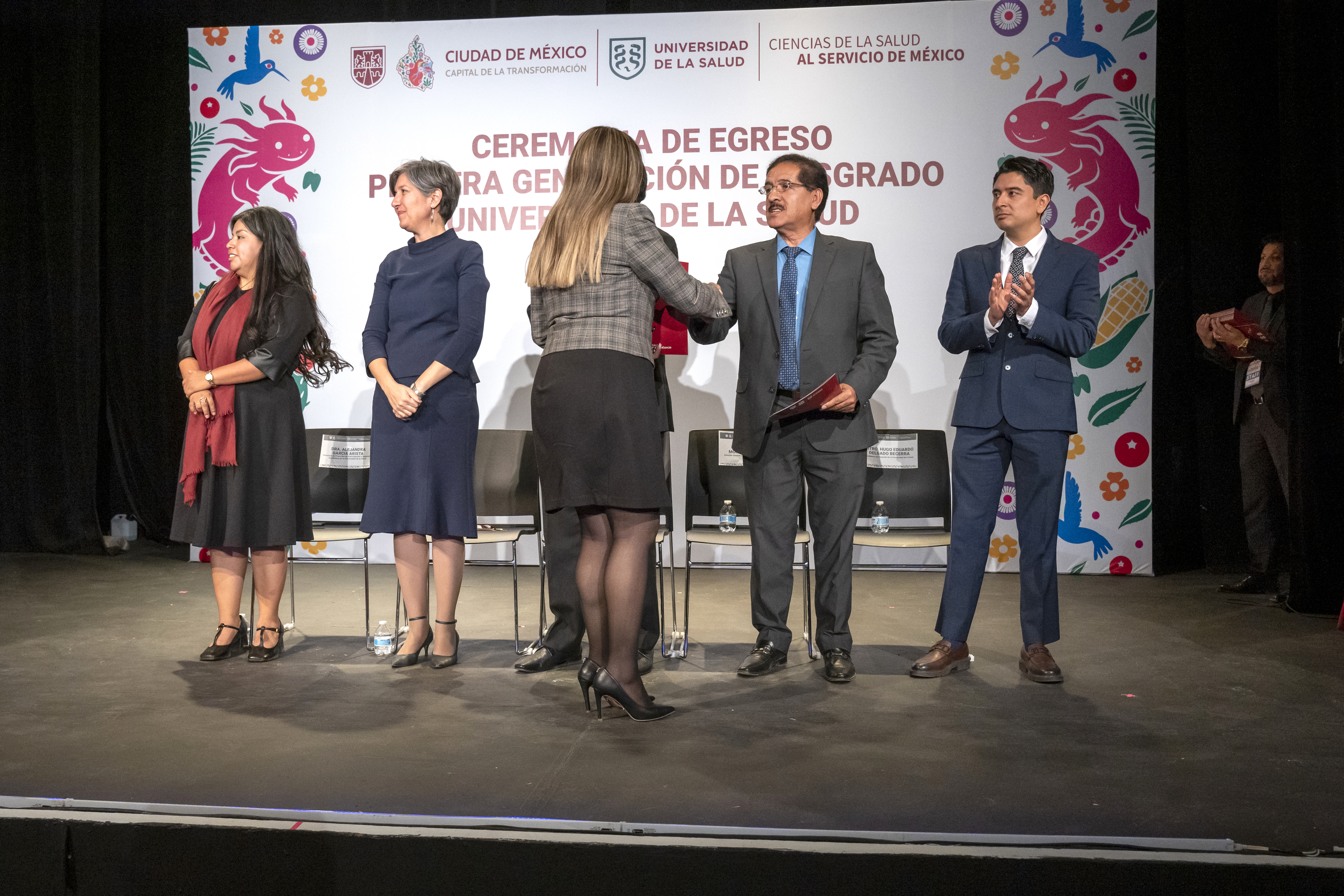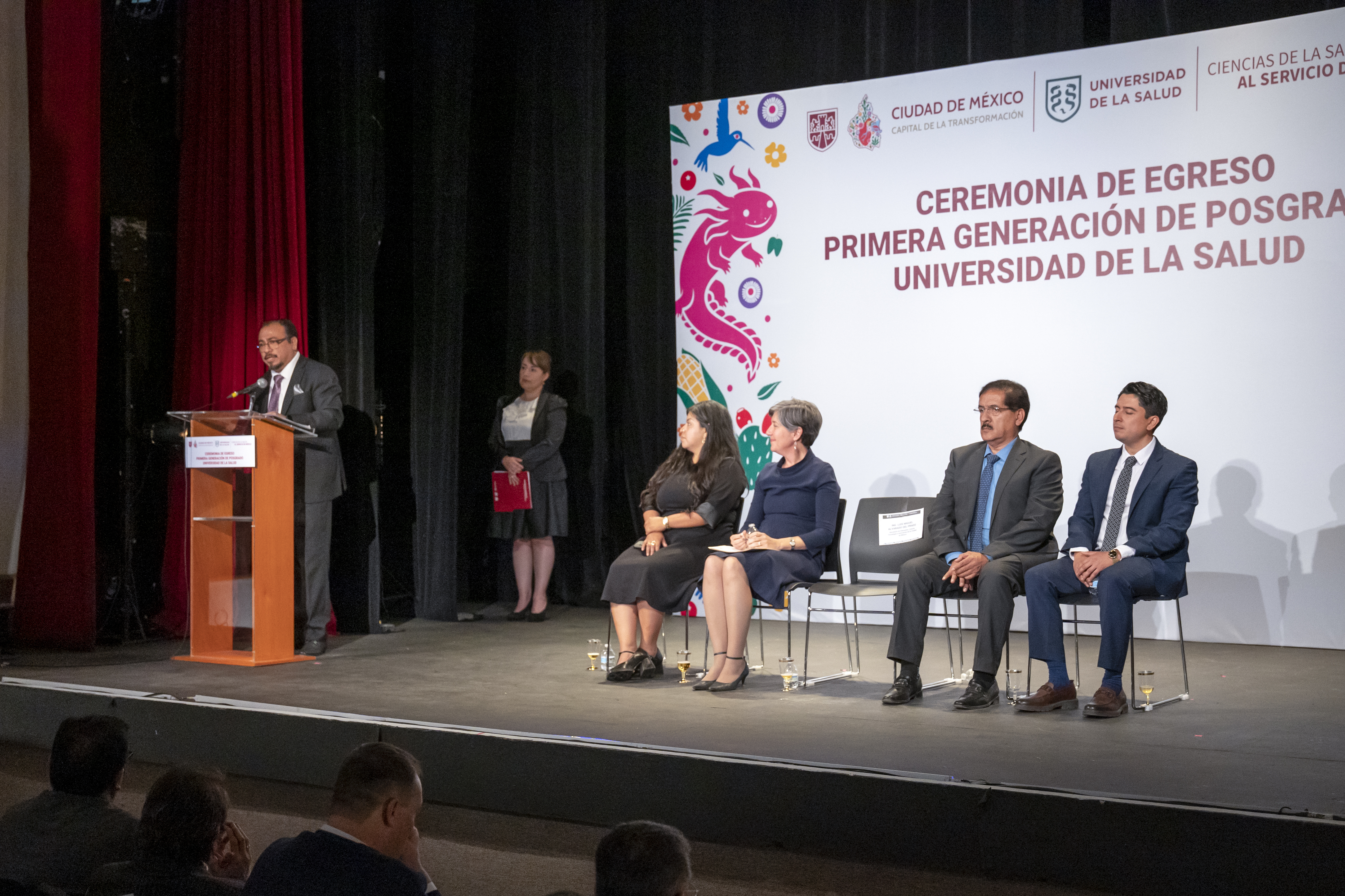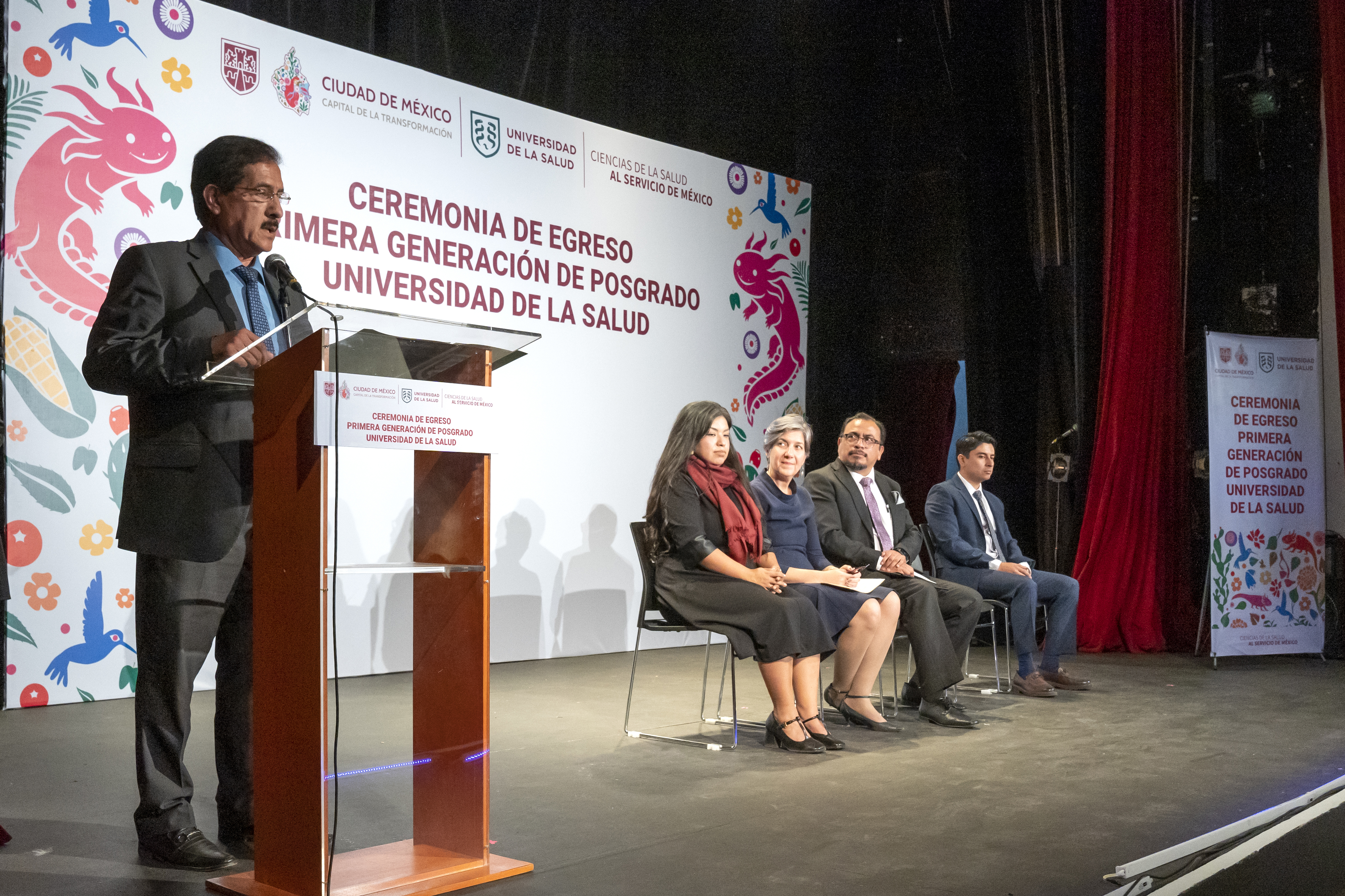 En su intervención, el ingeniero, Luis Miguel Alvarado del Prado, comunicó que las trayectorias de las y los egresados reflejan excelencia y confianza en una institución joven de logros significativos como la UNISA, subrayó que más del 60 por ciento son mujeres como muestra del avance en la profesionalización del sector salud y reconoció la relevancia de cada programa como respuesta a las enfermedades crónicas del país; destacó el carácter fundador de esta primera generación, celebró la diversidad institucional de sus integrantes provenientes de universidades públicas como la Universidad Nacional Autónoma de México (UNAM) y la Universidad Autónoma Metropolitana (UAM), así como de universidades privadas. Además, exhortó a las y los nuevos especialistas a ejercer con ética, transparencia y humildad en beneficio del proyecto nacional en salud.