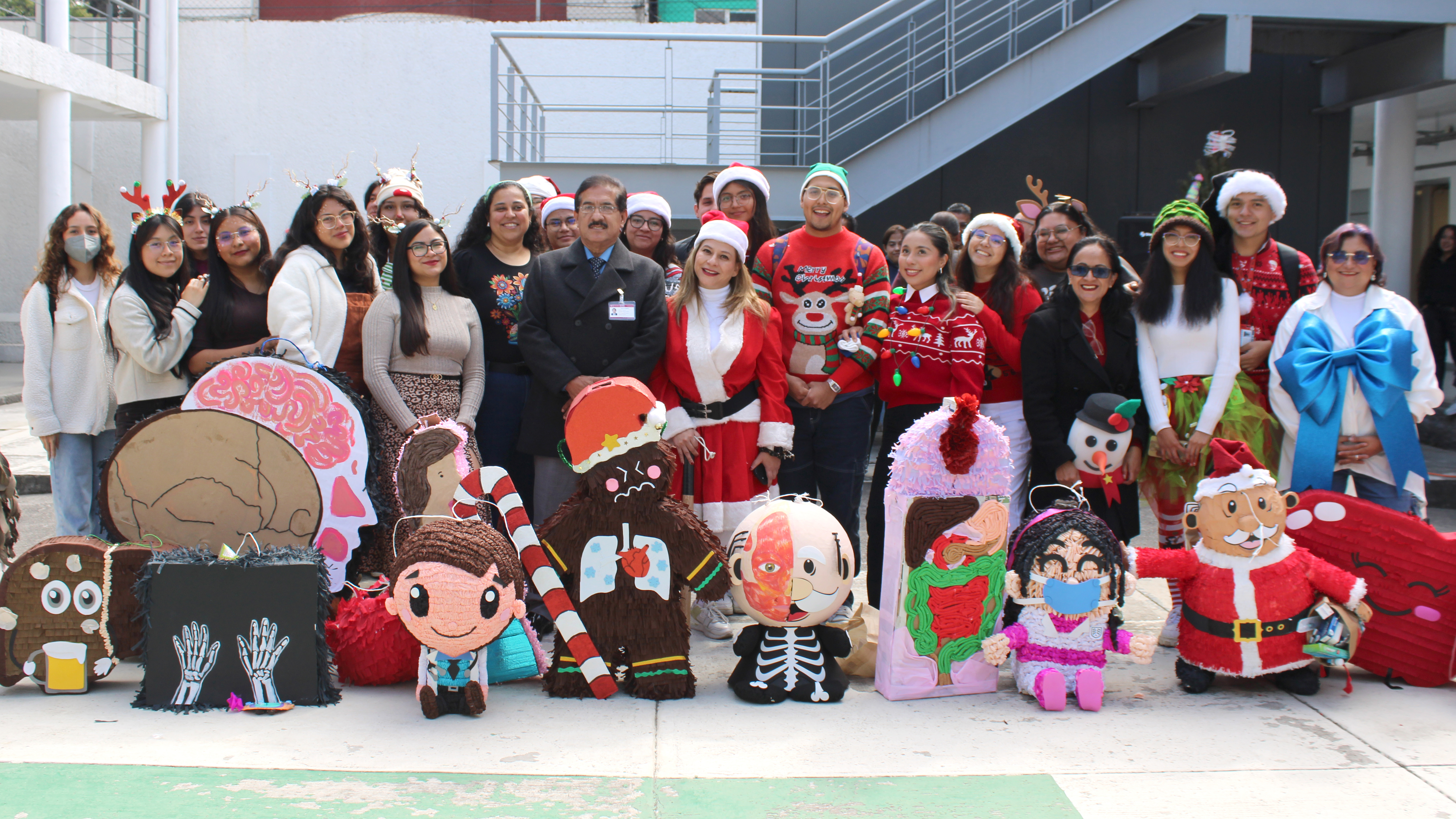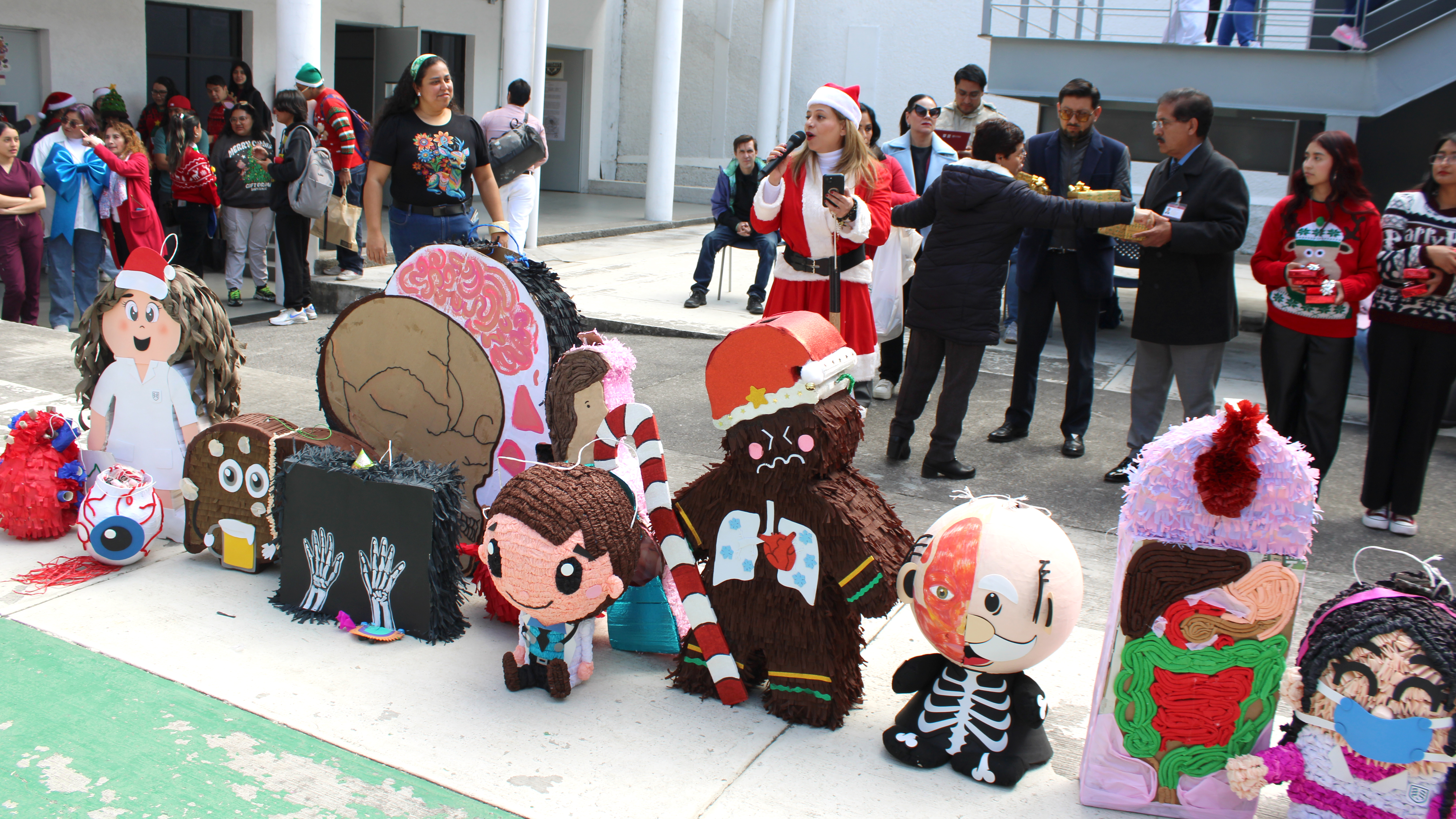 Las propuestas presentadas destacaron por su carácter didáctico y creativo, con temáticas vinculadas a la formación en salud. Se pudieron observar piñatas con formas de neuronas, riñones, úteros, músculos, huesos y sistemas digestivos, así como representaciones inspiradas en COVID-19, ambulancias, medicamentos, personal médico e incluso un Santa Claus médico, demostrando que la ciencia y la tradición pueden integrarse de manera original y festiva.