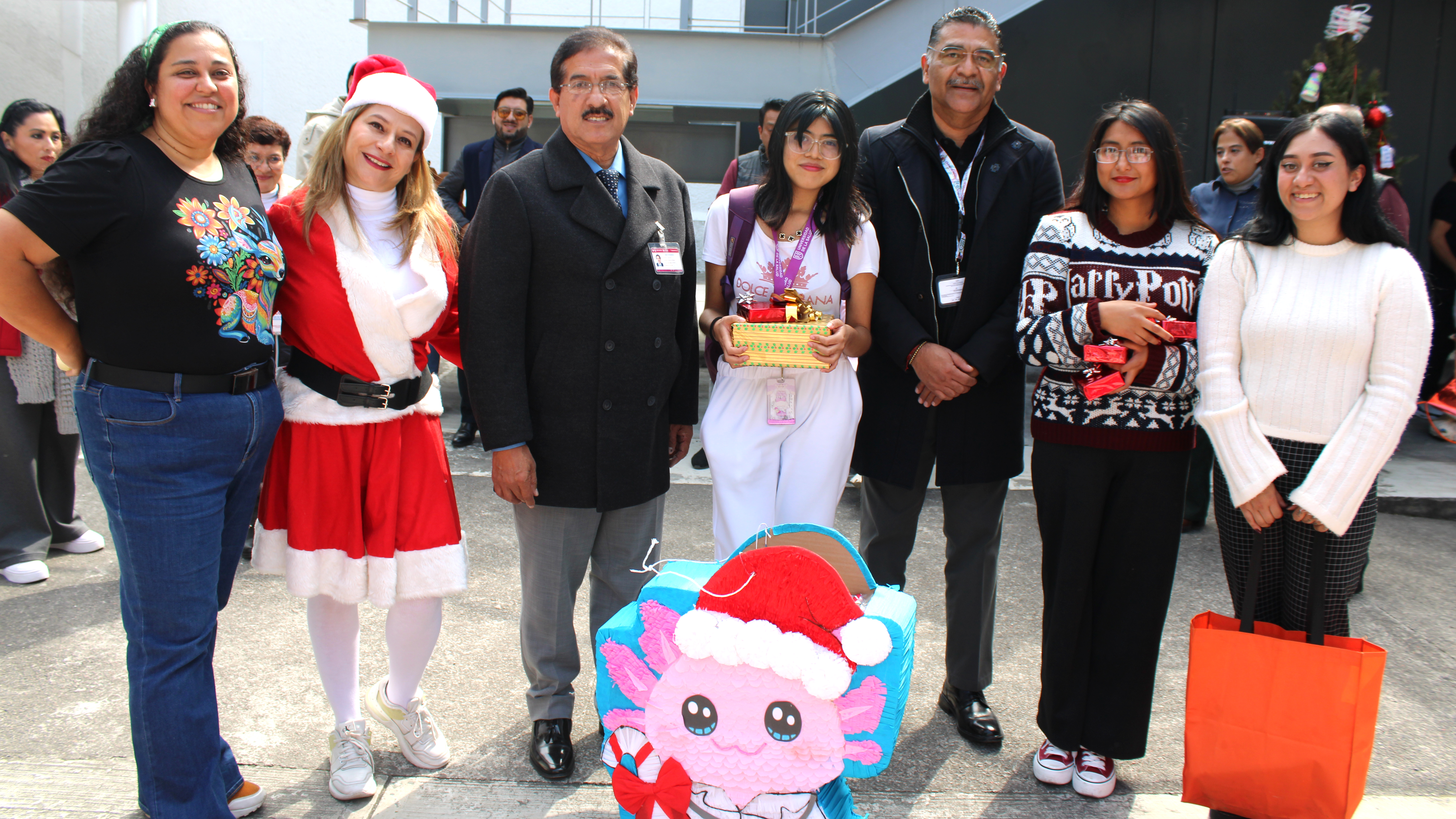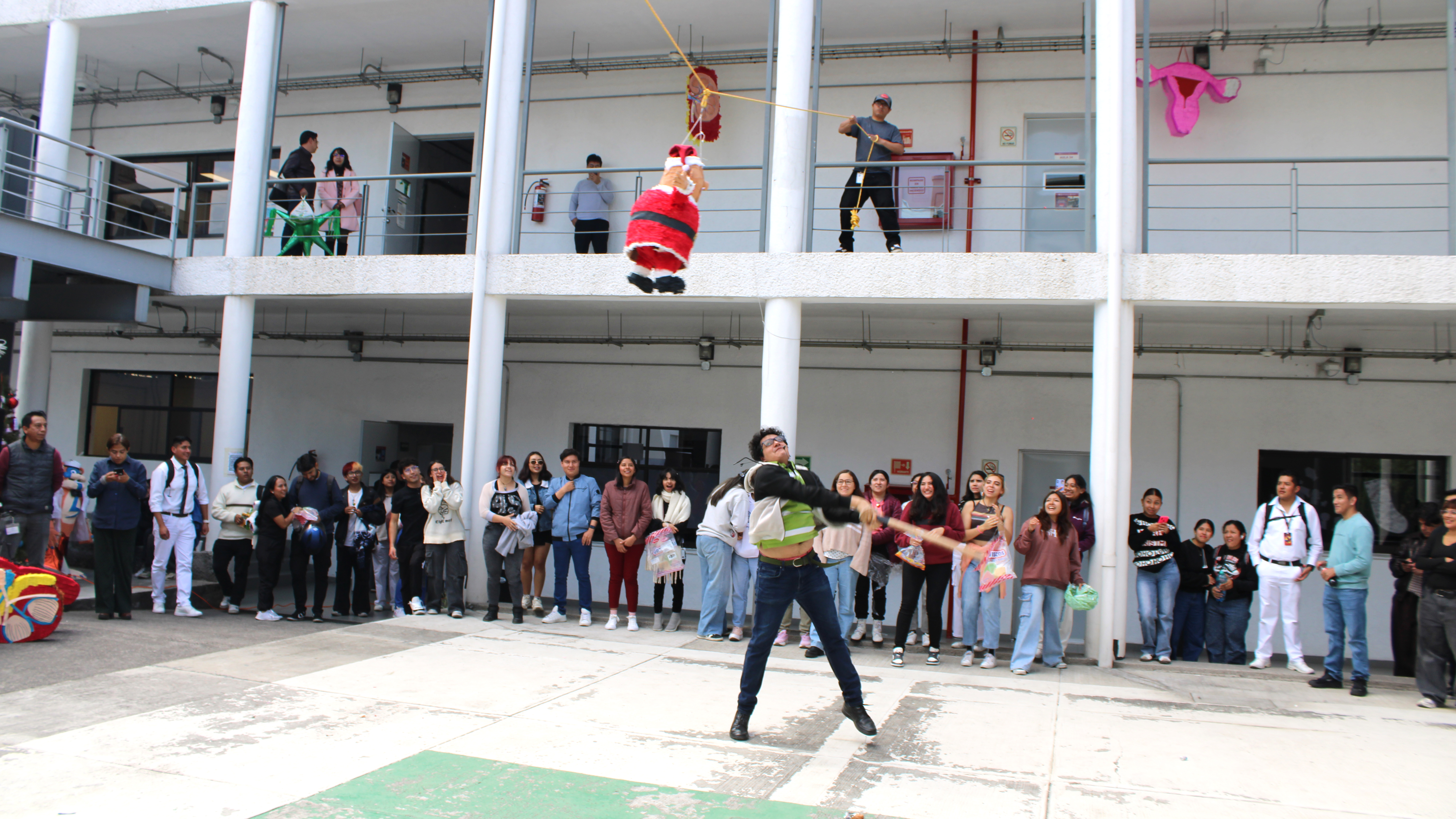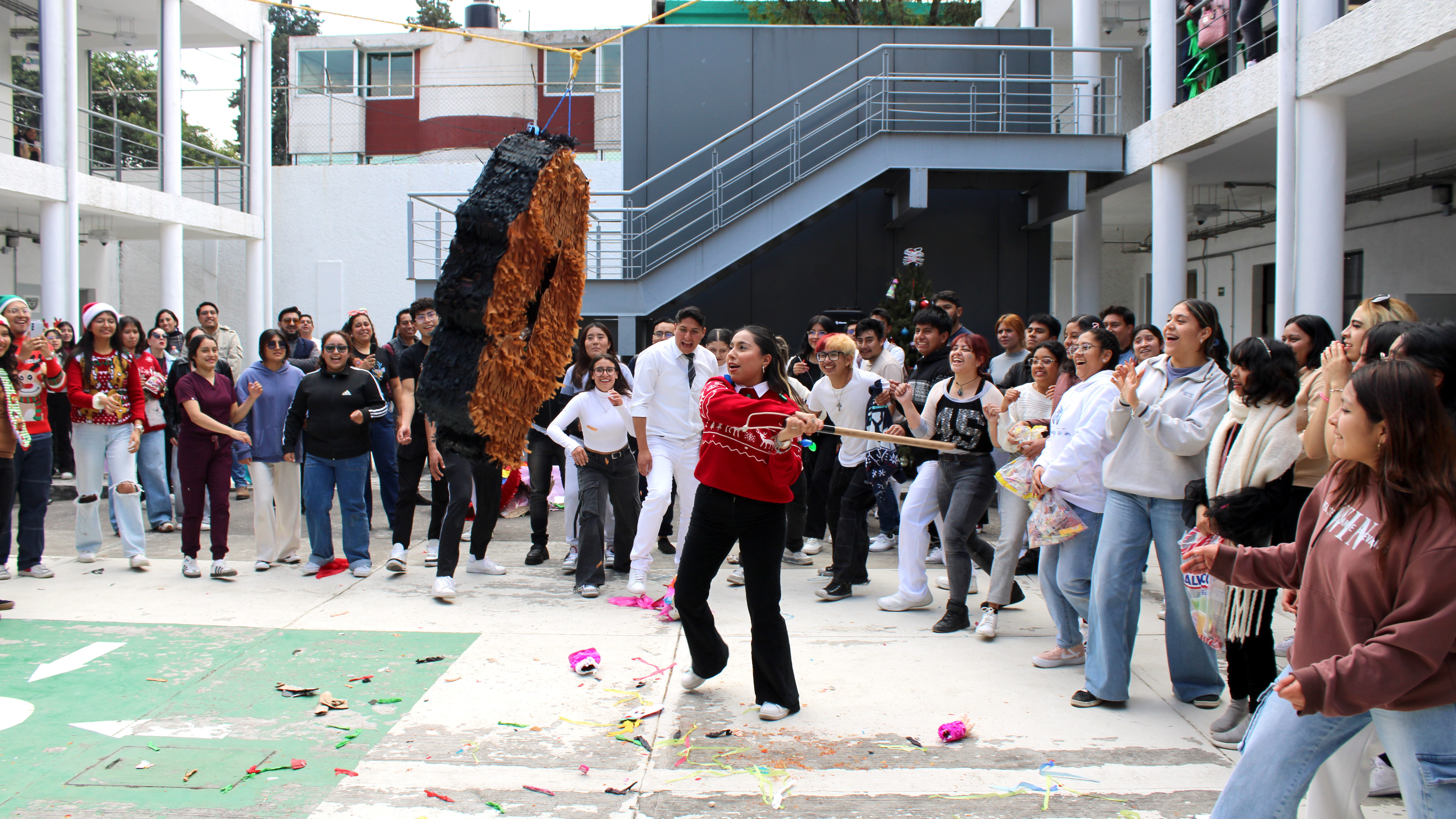 La jornada inició con la exhibición de 45 piñatas, recibidas físicamente de un total de 63 registros originales, además de una entrega extemporánea, lo que reflejó el entusiasmo, compromiso y alta participación del estudiantado. Posteriormente, la comunidad académica y estudiantil, ataviada con atuendos navideños y de renos, participó en la dinámica de romper las piñatas, generando un ambiente de convivencia, alegría y orgullo universitario.