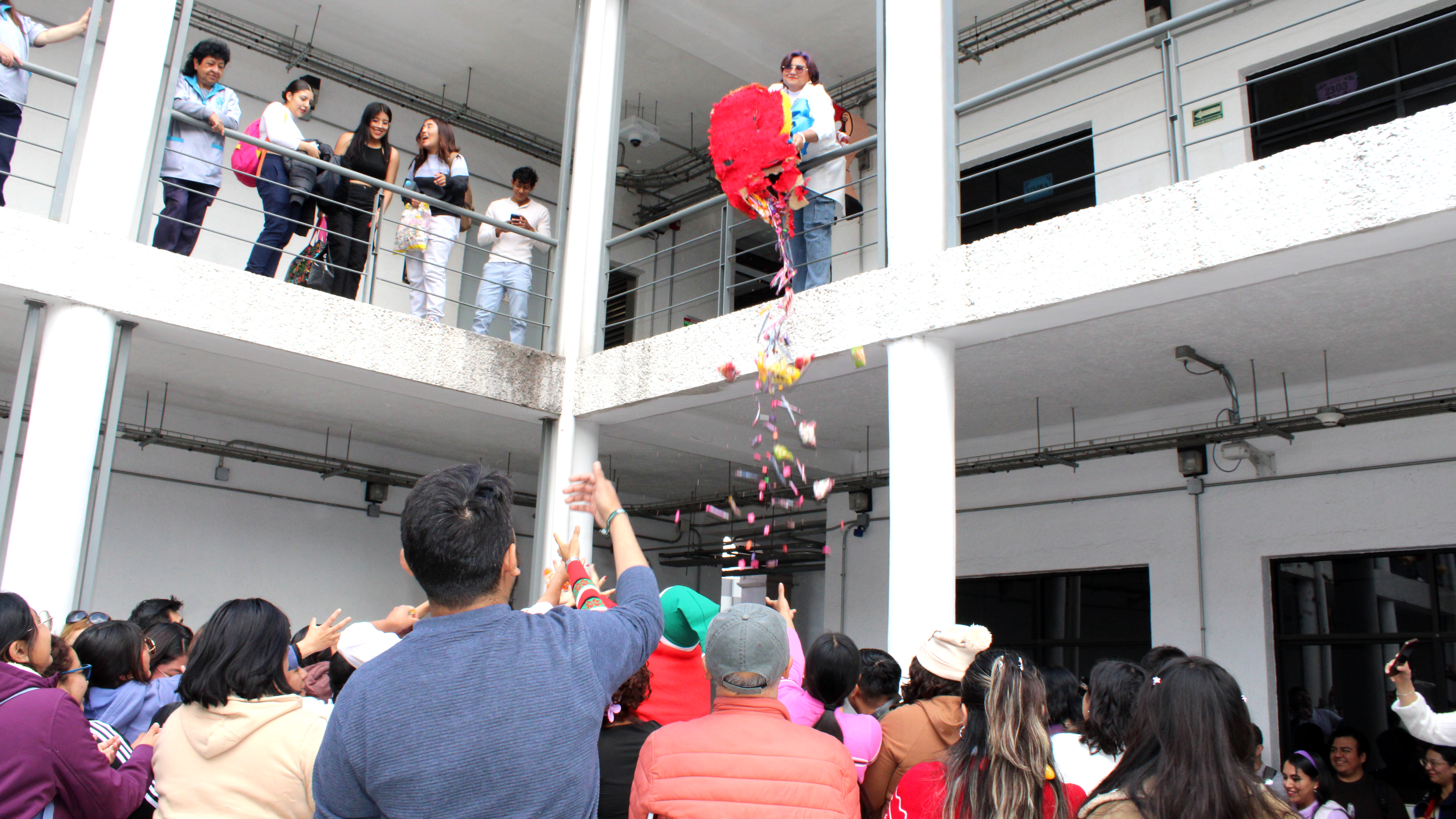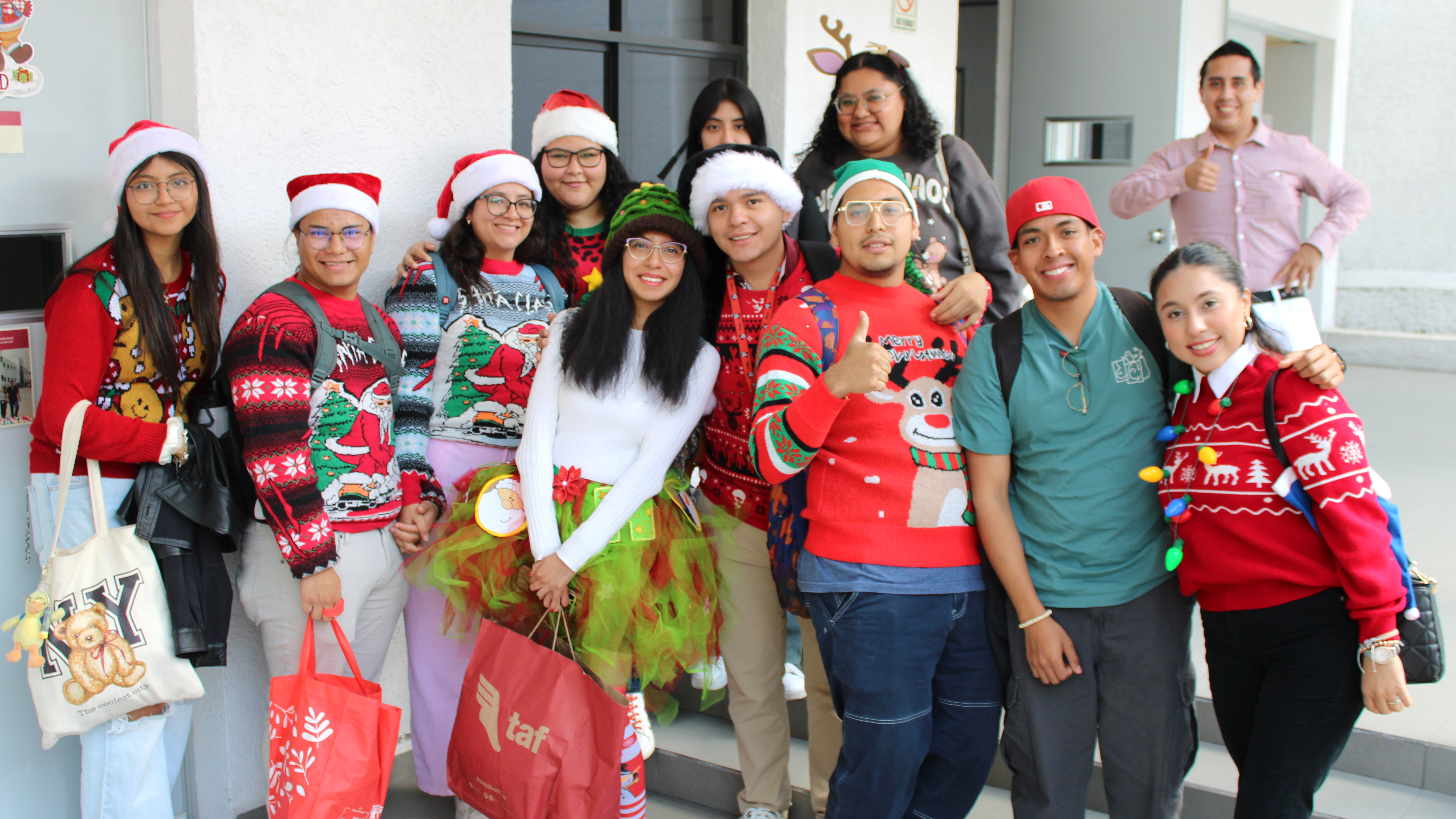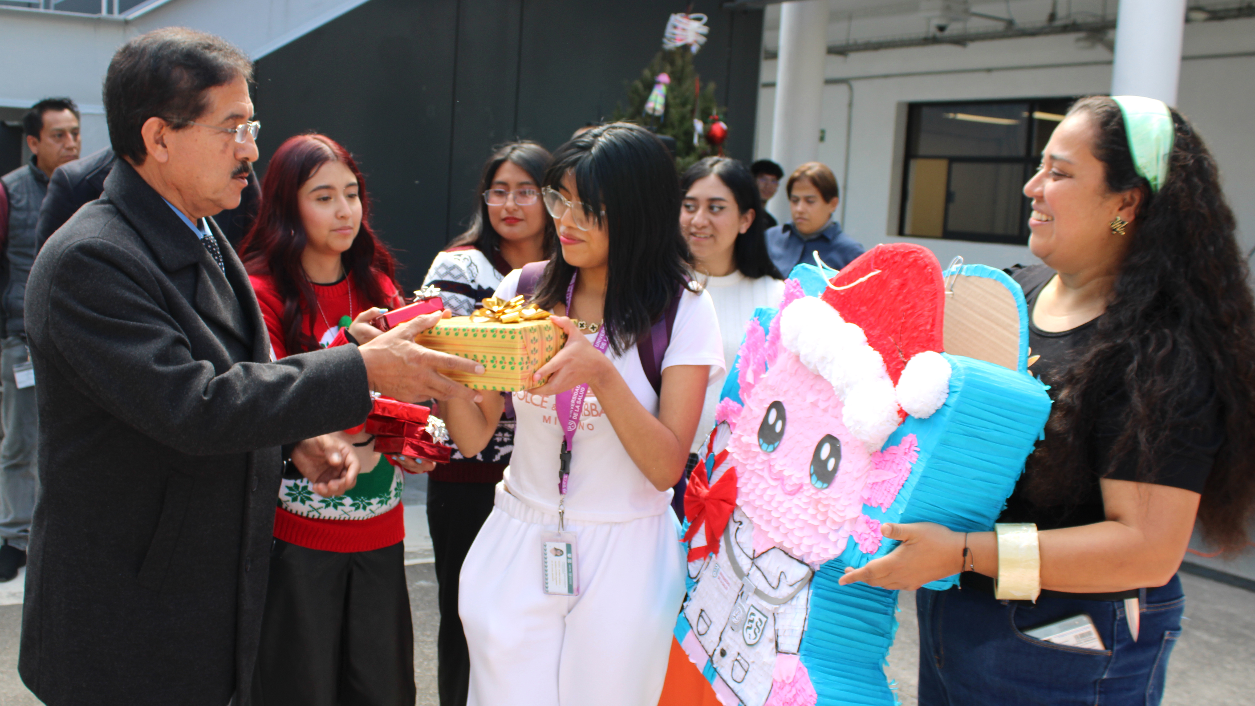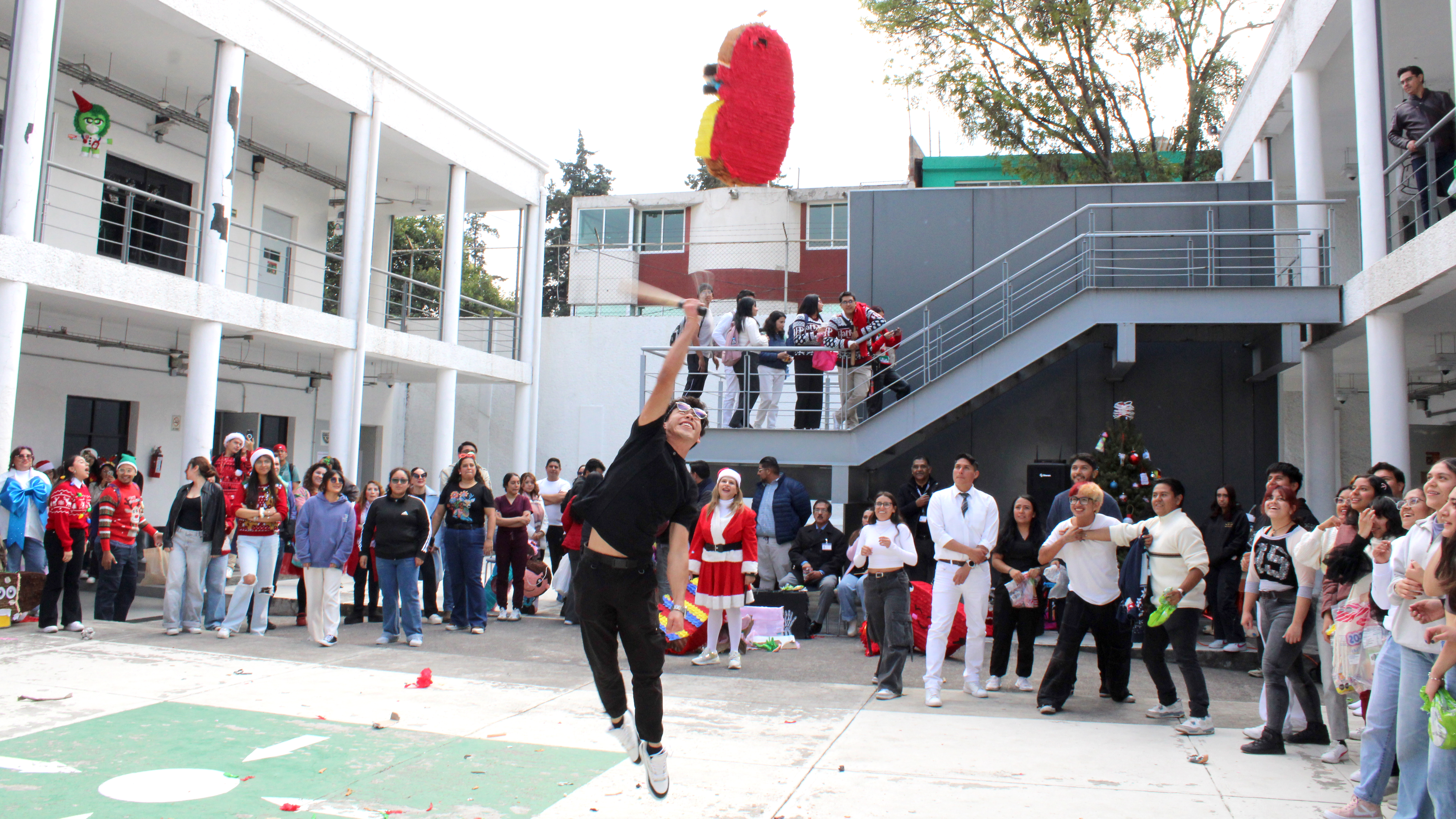 La jornada inició con la exhibición de 45 piñatas, recibidas físicamente de un total de 63 registros originales, además de una entrega extemporánea, lo que reflejó el entusiasmo, compromiso y alta participación del estudiantado. Posteriormente, la comunidad académica y estudiantil, ataviada con atuendos navideños y de renos, participó en la dinámica de romper las piñatas, generando un ambiente de convivencia, alegría y orgullo universitario.
