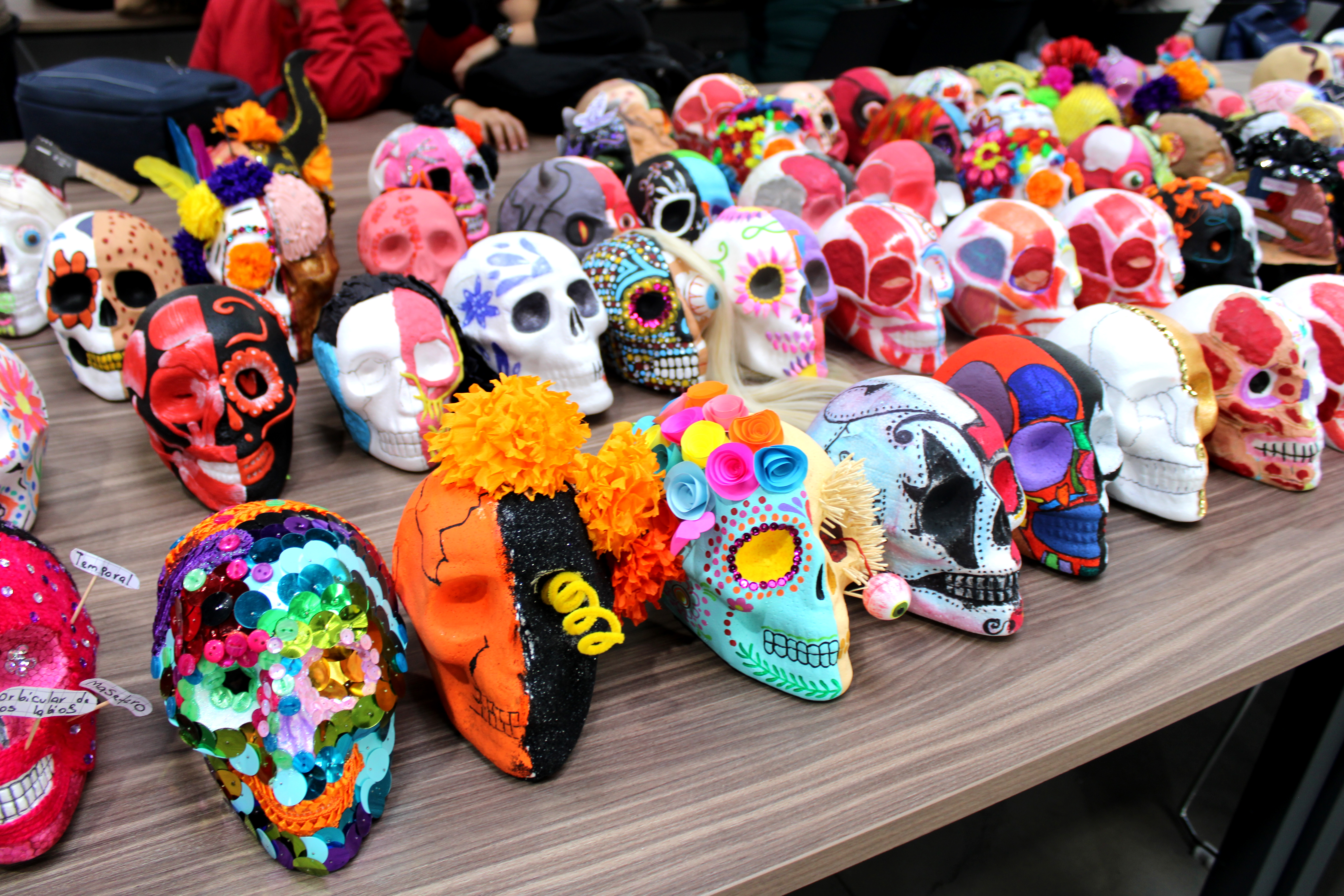 La respuesta estudiantil fue contundente: se recibieron 187 cráneos decorados, elaborados por personas estudiantes de todos los grados de la Licenciatura en Medicina, así como por estudiantes de primero y segundo año de la Licenciatura en Enfermería. Además, se sumaron dos aportaciones anónimas que enriquecieron la diversidad del montaje.