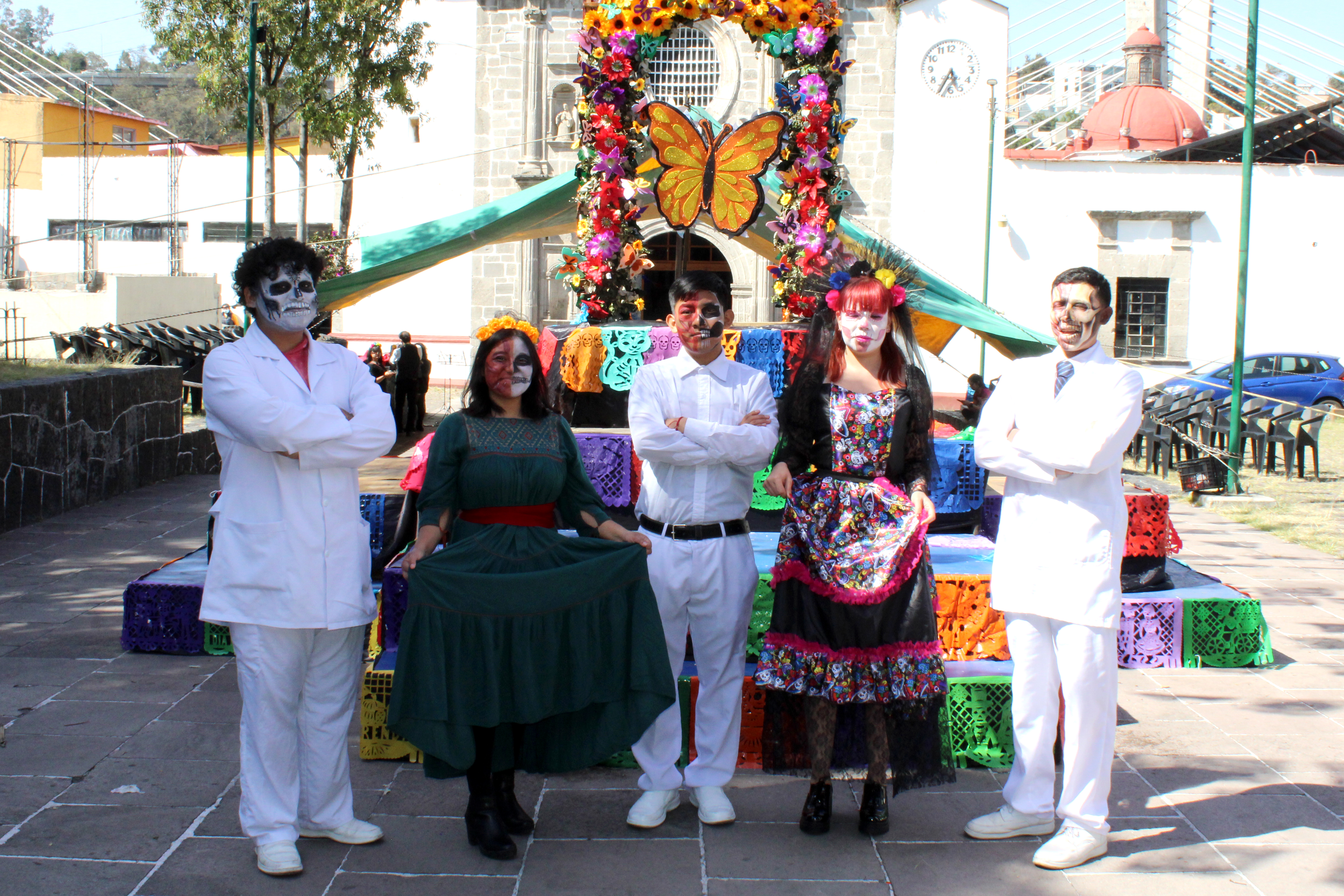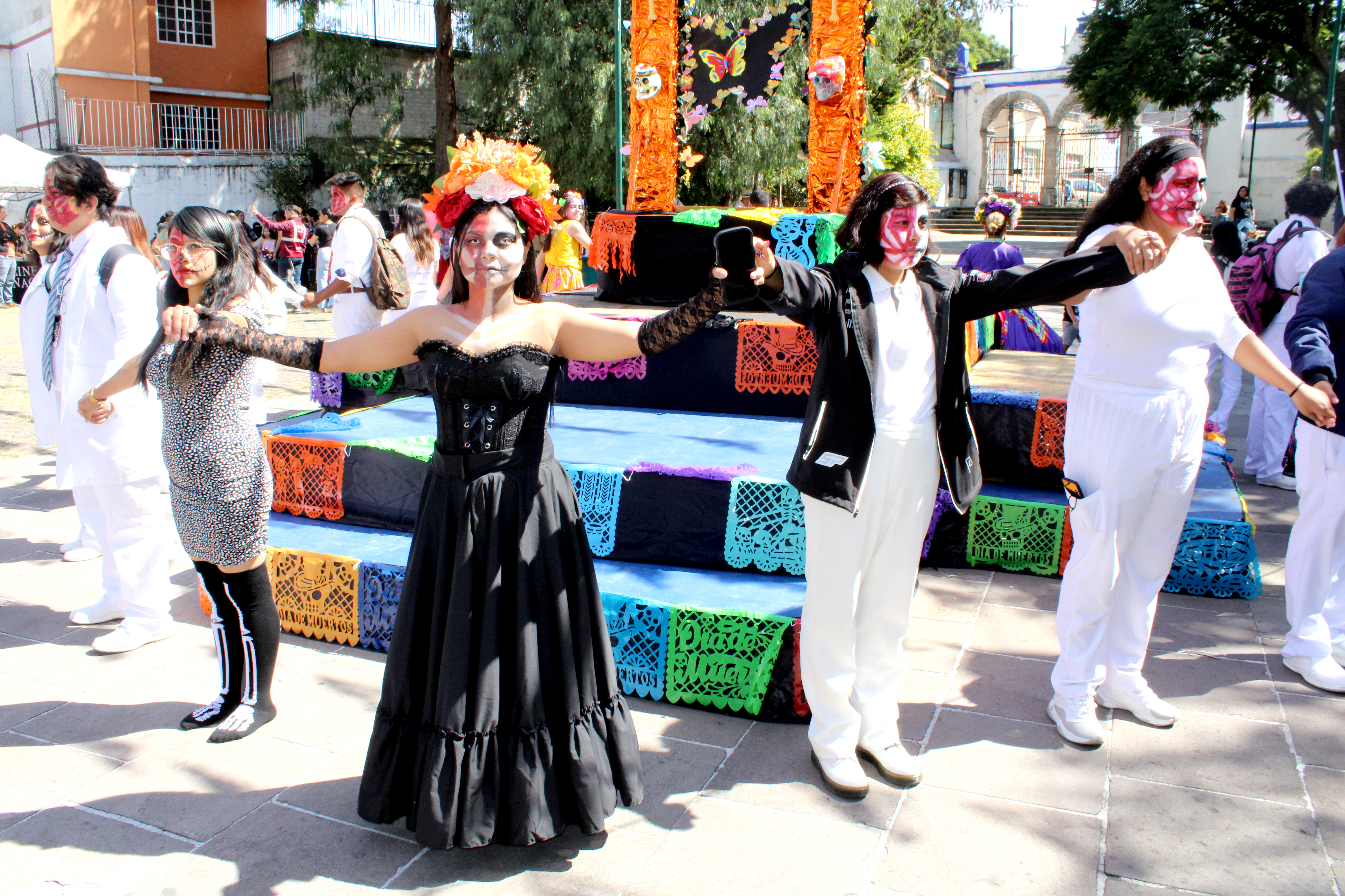 El 24 de octubre, el montaje del Tzompantli —estructura ceremonial que evoca las raíces prehispánicas de esta celebración— dio paso a la inauguración oficial de la ofrenda el día 27, acompañada por una exposición de calaveritas literarias escritas por estudiantes. El patio del edificio Santa Fe se transformó en un espacio de encuentro, reflexión y color, donde las tradiciones mexicanas cobraron vida.