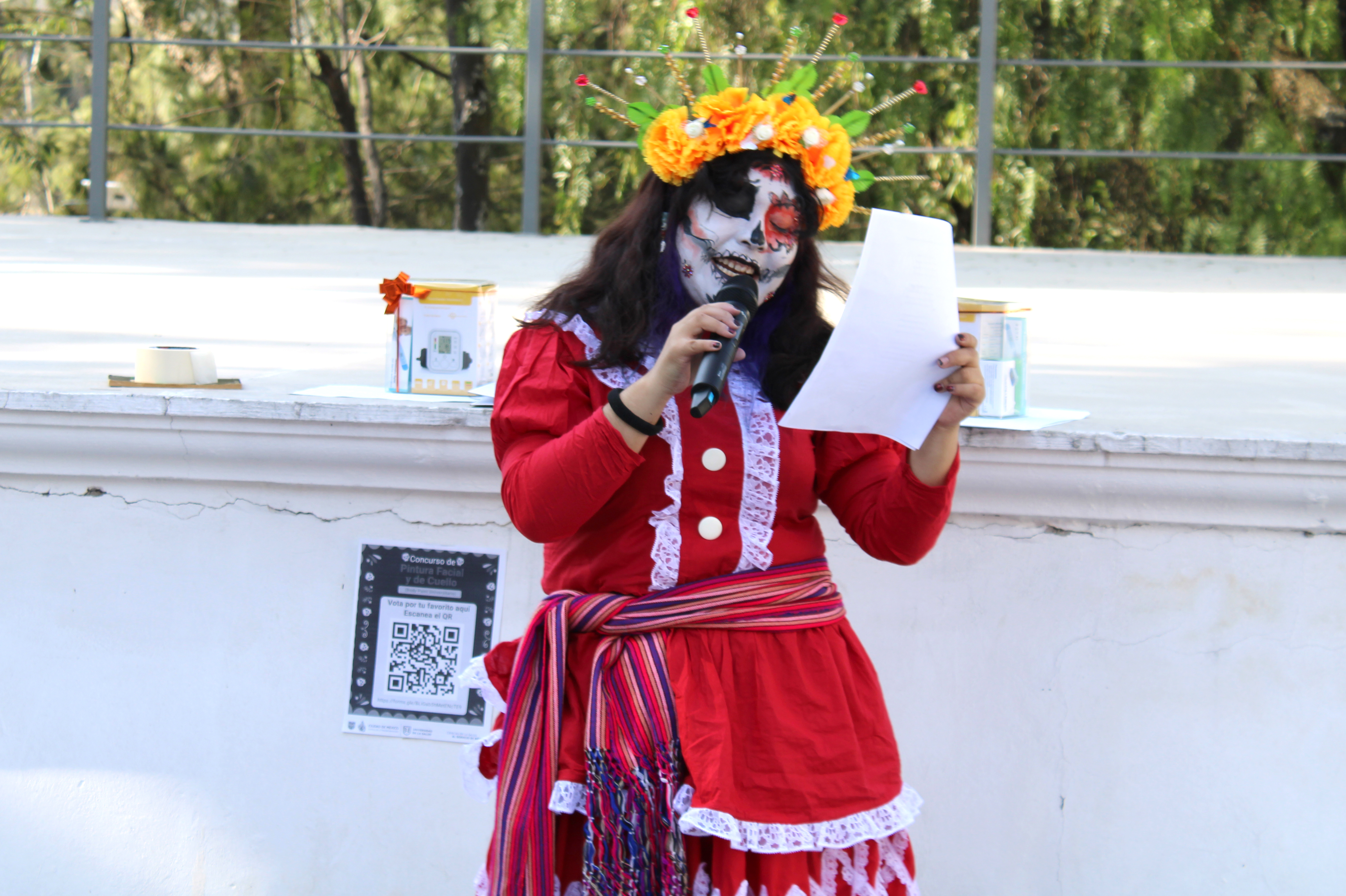 El 31 de octubre, la creatividad se desbordó con dos concursos que capturaron la atención de toda la comunidad: el de calaveritas literarias, que combinó humor y crítica social en versos ingeniosos, y el de disfraces de cuerpo completo, donde el body paint universitario se convirtió en una expresión artística de alto nivel. Ambos eventos se realizaron en Teatro al aire libre de la UNISA.
