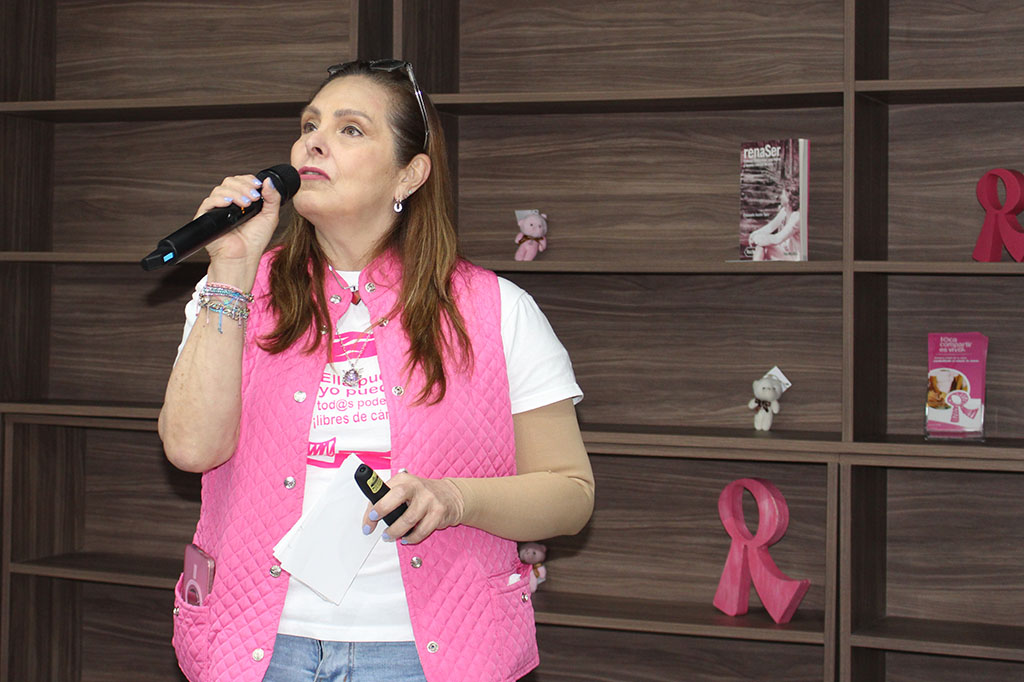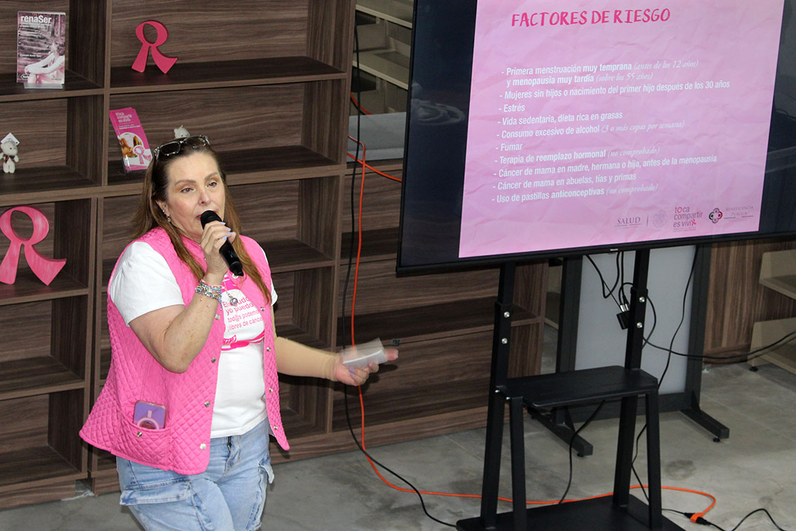 La ponente, C. Marcela Leyva Andrade compartió información vital basada en su experiencia como sobreviviente de cáncer de mama y su labor al frente de la fundación. Durante la conferencia se abordaron temas como los factores de riesgo, la importancia de conocer el propio cuerpo desde una edad temprana y los métodos correctos para la autoexploración mamaria tanto en mujeres como en hombres.