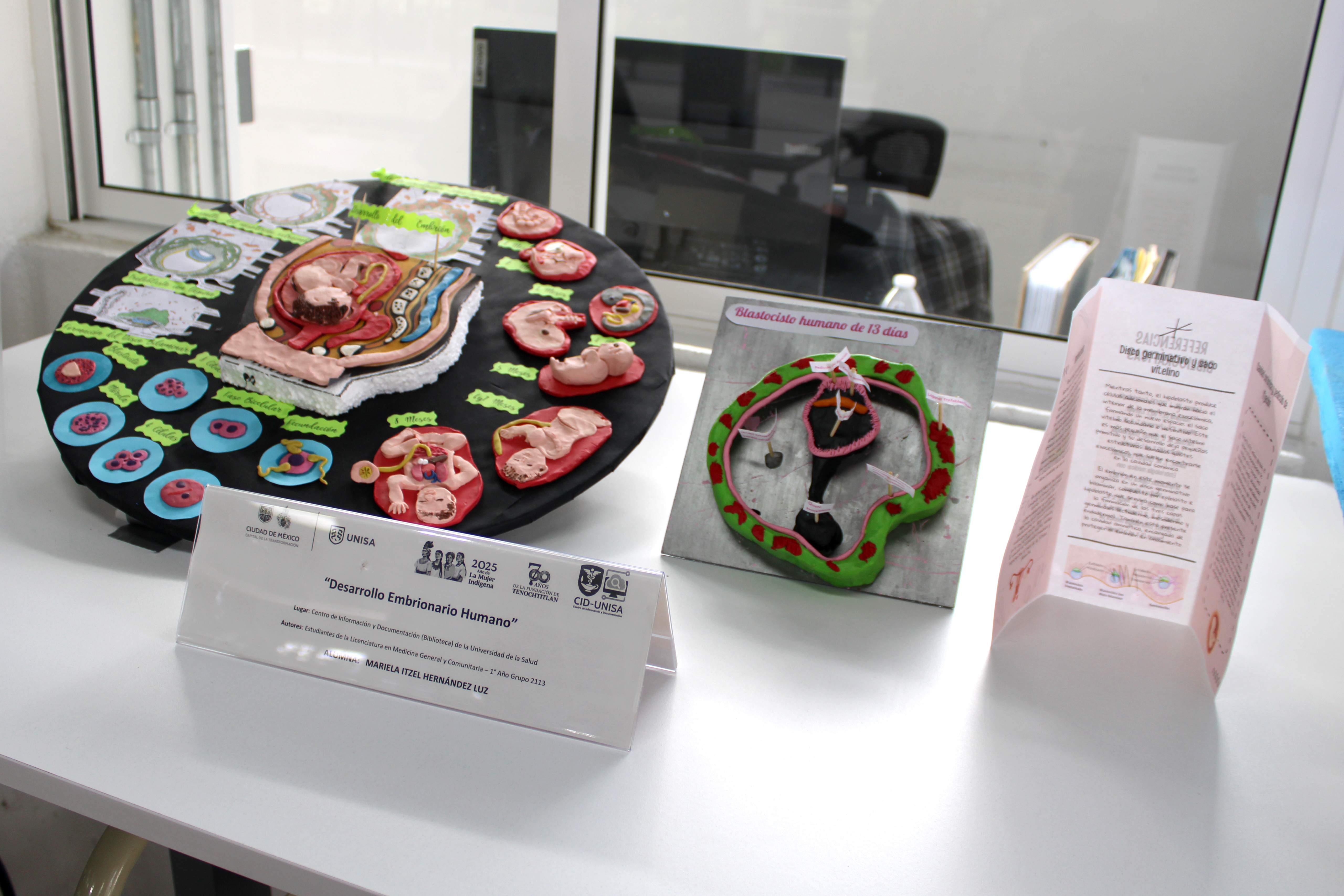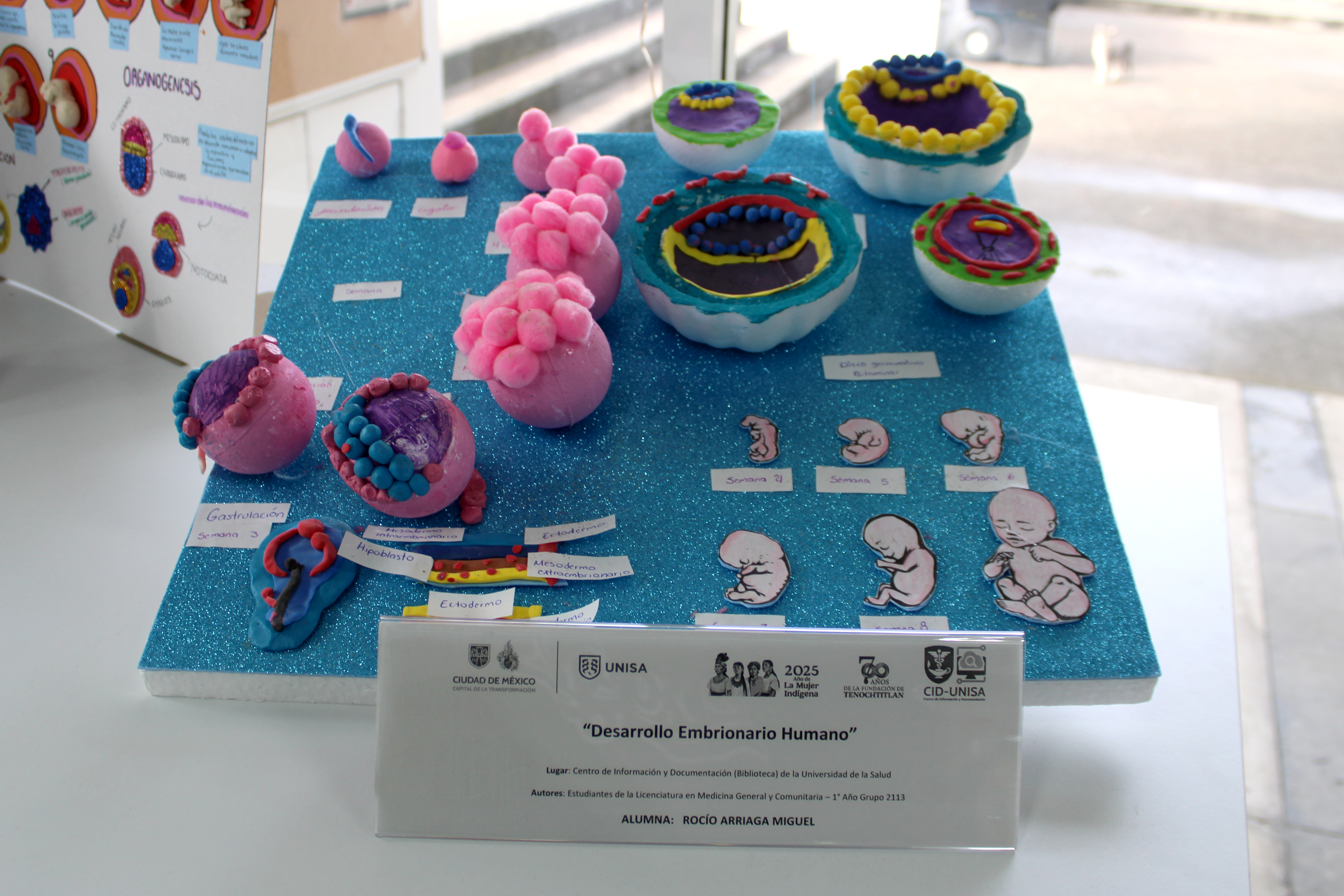 La embriología, rama de la biología que estudia el desarrollo del ser humano desde la fecundación hasta el nacimiento, constituye un área fundamental en la formación médica. A fin de facilitar su comprensión, las y los estudiantes del grupo 2113 elaboraron modelos tridimensionales que integran los conocimientos teóricos con un enfoque visual y práctico, representando procesos como la segmentación, gastrulación, organogénesis y desarrollo de sistemas específicos.