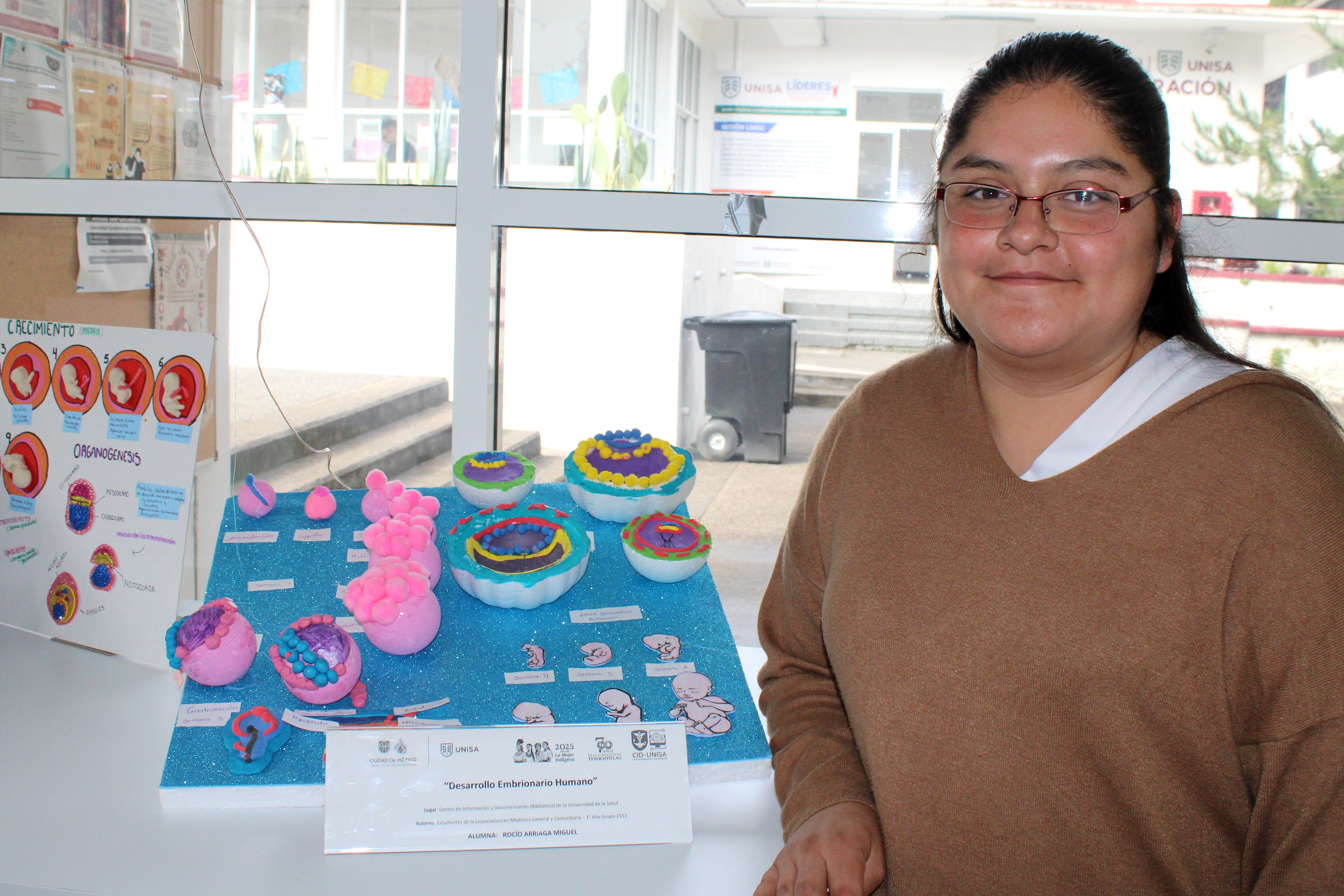 Con el propósito de reforzar el aprendizaje significativo y fomentar la creatividad en el aula, estudiantes de primer año de la Licenciatura en Medicina General y Comunitaria de la Universidad de la Salud (UNISA) realizaron maquetas representativas de las distintas etapas del desarrollo embrionario. Esta actividad formó parte de la asignatura Curso de Vida I, impartida por la docente Marizza Flores Torres.