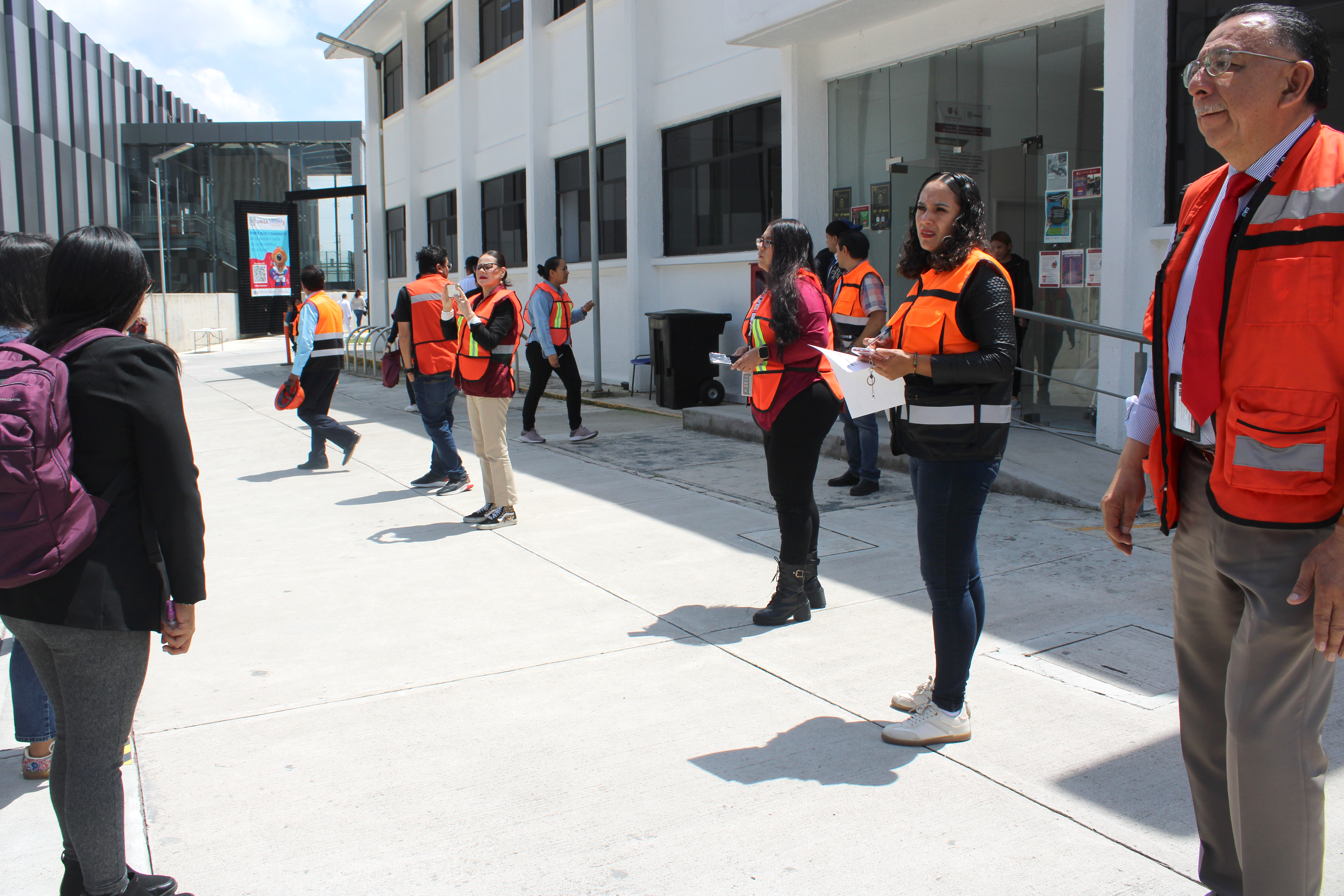 La Comunidad Universitaria, bajo la guía del Comité Interno de Protección Civil Escolar (CIPCE) de la UNISA, ejecutó acciones coordinadas de evacuación, repliegue y comunicación, lo que permitió fortalecer sus capacidades de respuesta ante situaciones de emergencia. Para el ejercicio, las y los brigadistas contaron con chalecos distintivos y se organizaron conforme a los lineamientos oficiales en áreas clave: primeros auxilios, combate de incendios, evacuación, comunicaciones y apoyo psicosocial.